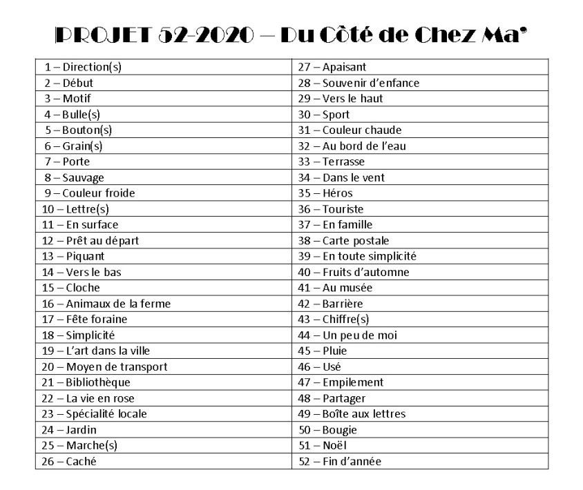 18ème semaine du Projet 52-2020, dont le thème est..